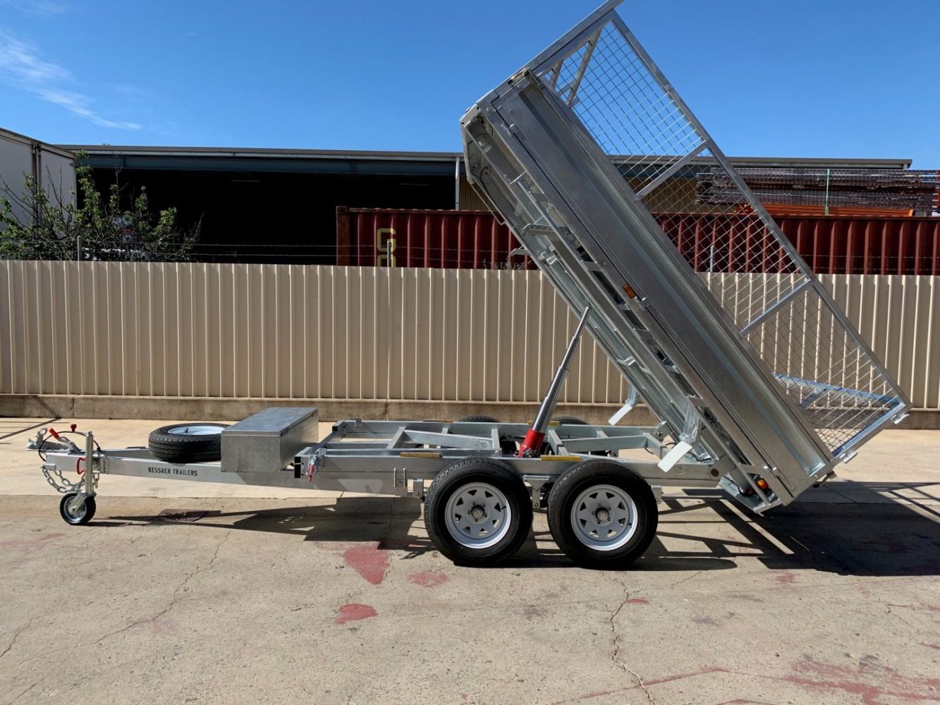 3000KG FLAT TOP GALVANISED COMMERCIAL TIPPER WITH BRAKES + CAGE + RAMPS